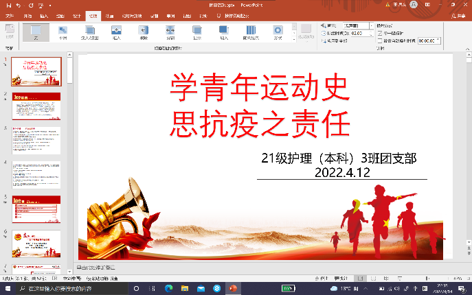 2022413日早上,21级护理(本科)3班团支部在线上腾讯会议开展了主题为“学青年运动史,思抗疫之责任”的团日活动。