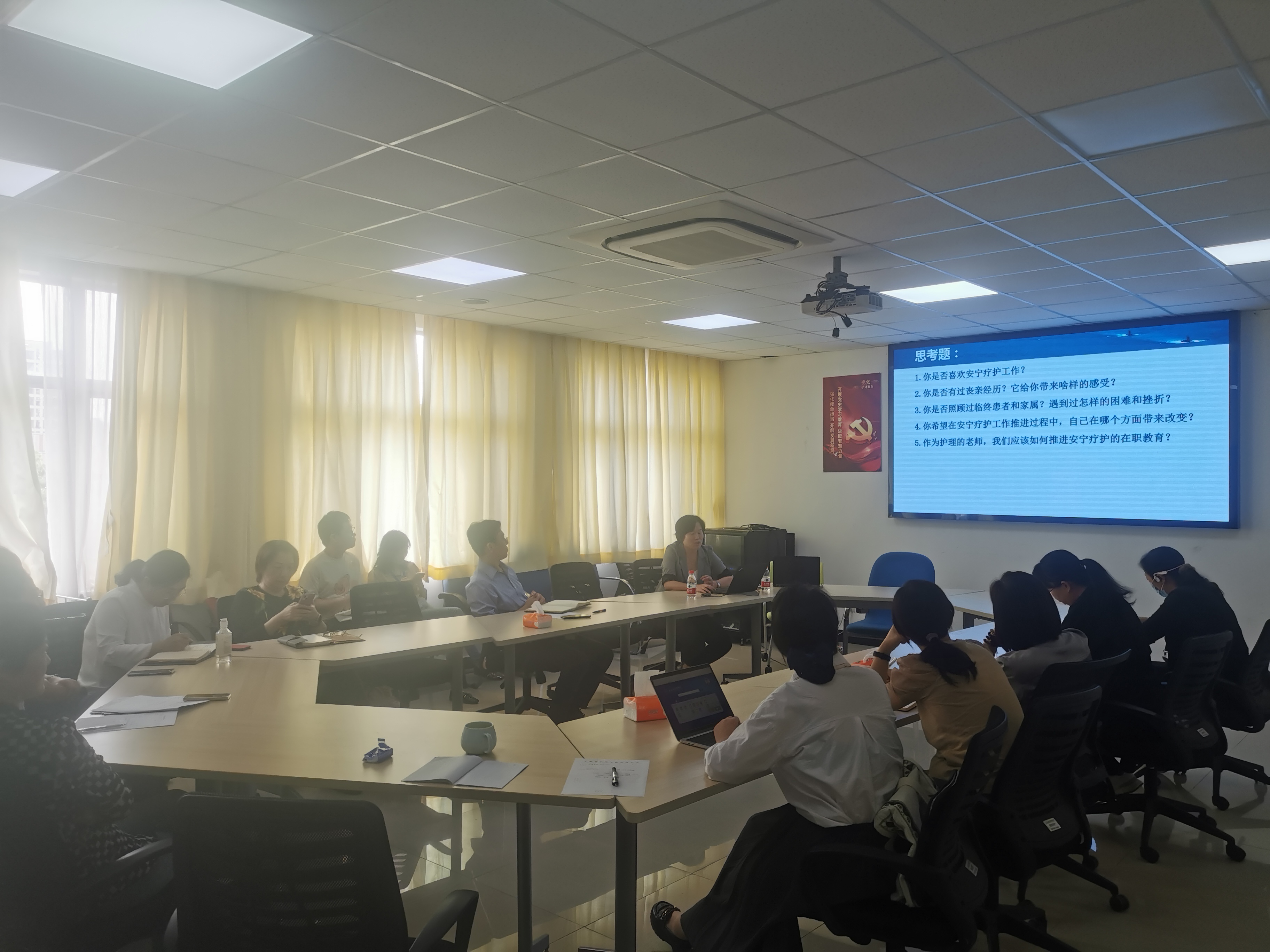 李丽主任对安宁疗护溯源与概念变迁、上海安宁疗护现状、上海安宁疗护政策、上海安宁疗护服务管理中心建设进行了介绍,并围绕安宁疗护实践标准、姑息与临终关怀机构质量管理、患者及家属心理健康状况相关研究、安宁疗护的形式与策略、安宁疗护知信行研究、ICU安宁疗护实施与难点等研究热点进行了回顾与展望。提出,我院作为上海市高水平应用技术型本科医学院校,未来在安宁疗护人才培养与科学研究方面可以充分发挥自身的优势与特色,与临床医疗机构紧密合作,为上海的安宁疗护事业发展贡献力量。