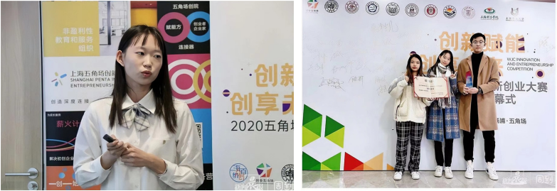 “我想参加科创。”“诶对,我也想玩机械发明。” 刚入学的时候,她和她的室友一拍即合,一起去找到了辅导员和班导师,从此,她就与创新创业结下了不解之缘,在老师们和同学们的帮助下,2019年参与到康手宝-智能防颤康复辅助勺项目团队,曾在《周到上海》被报道宣传。2020年,她作为科研项目负责人,主持了一项国家级创新创业立项项目,带领团队成员致力于居家老年人防跌倒扶手的设计。她已获批1项国家级实用新型专利“一种智能勺”和1项国家级发明专利“一种智能勺及其使用方法”,另申请了三项国家级实用新型专利“一种带测温功能的平衡勺头”、“一种防颤装置”、“一种坐便器智能扶手装置”。已成功分别以第一作者和第二作者于国家级期刊《大众健康》发表两篇科普文章“理疗瑜伽,拯救你的颈椎”、“练出翘臀,没那么难”,以第一作者于国家级期刊《科技与创新》发表一篇论文“居家老年人智能如厕防跌倒系统设计”。