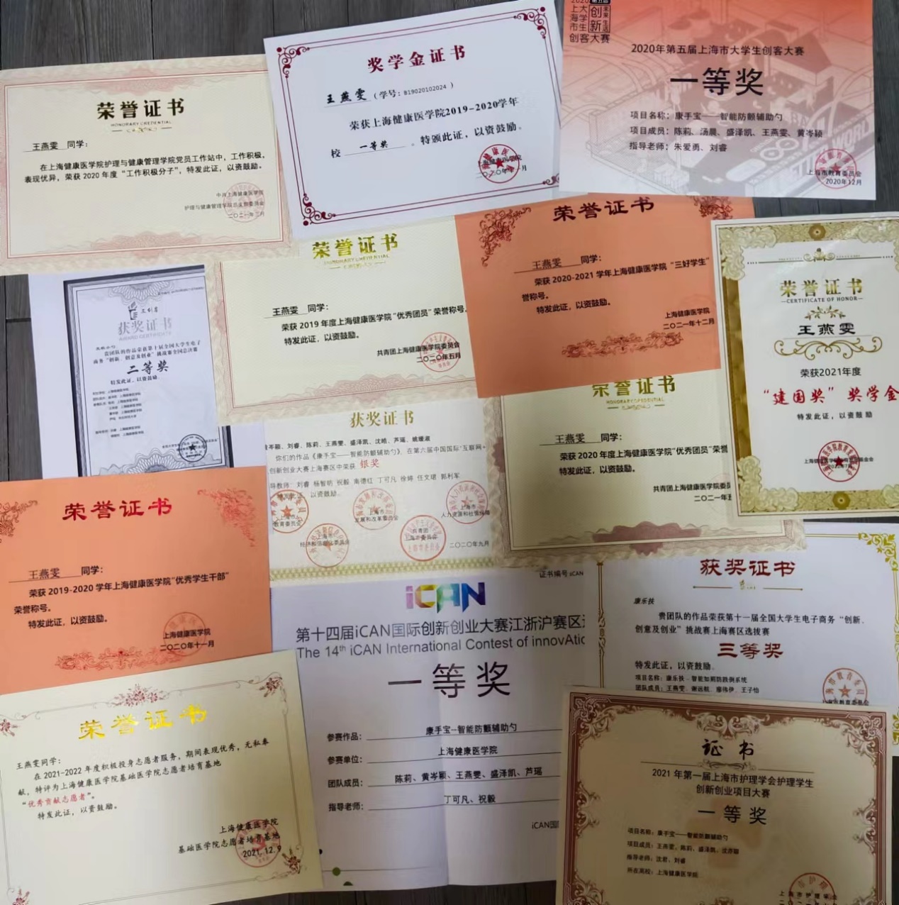 王燕雯,中共预备党员,19级护理(本科)2班,担任班级团支书。获2021-2022学年上海市奖学金、2021年度“建国奖”奖学金、第十届全国大学生电子商务“创新、创意及创业”全国总决赛二等奖、第十四届iCAN中国国际创新创业大赛中国总决赛三等奖、2021年上海市护理学会护理学生创新创业项目一等奖、第六届中国"互联网+"大学生创新创业大赛上海赛区银奖、2020年第五届上海市大学生创客大赛一等奖、校一等奖学金、校优秀学生干部、三好学生、优秀团干部等。