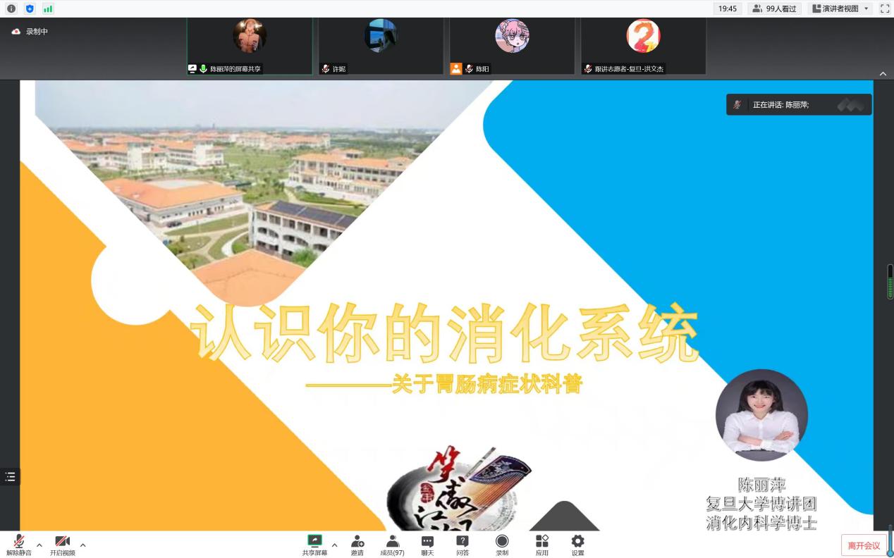 20221029日,第五期健康讲堂《认识你的消化系统--关于胃肠病症状科普》顺利开展。本次讲堂,我们再次邀请到复旦大学博讲团讲师——陈丽萍老师。
