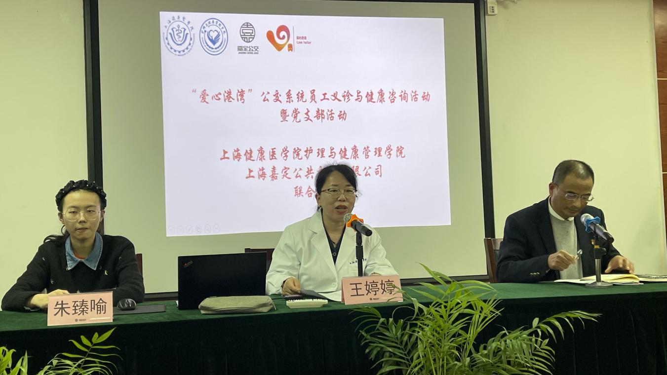 习近平总书记强调“把守护职工群众生命健康安全的堤坝筑牢守好”。为拓展职工健康服务应用场景,提升职工健康服务能力,2023年3月22日,bwin中国官方网站教工第二党支部组织教师们前往上海嘉定公共交通有限公司开展“爱心港湾”公交系统员工义诊与健康管理活动。此次活动在学院党总支的指导和支持下,由教工第二支部书记王婷婷教授带领,组织委员董静静老师协调,郭慧宁、白洁、汪颖霞老师参与了此次活动。