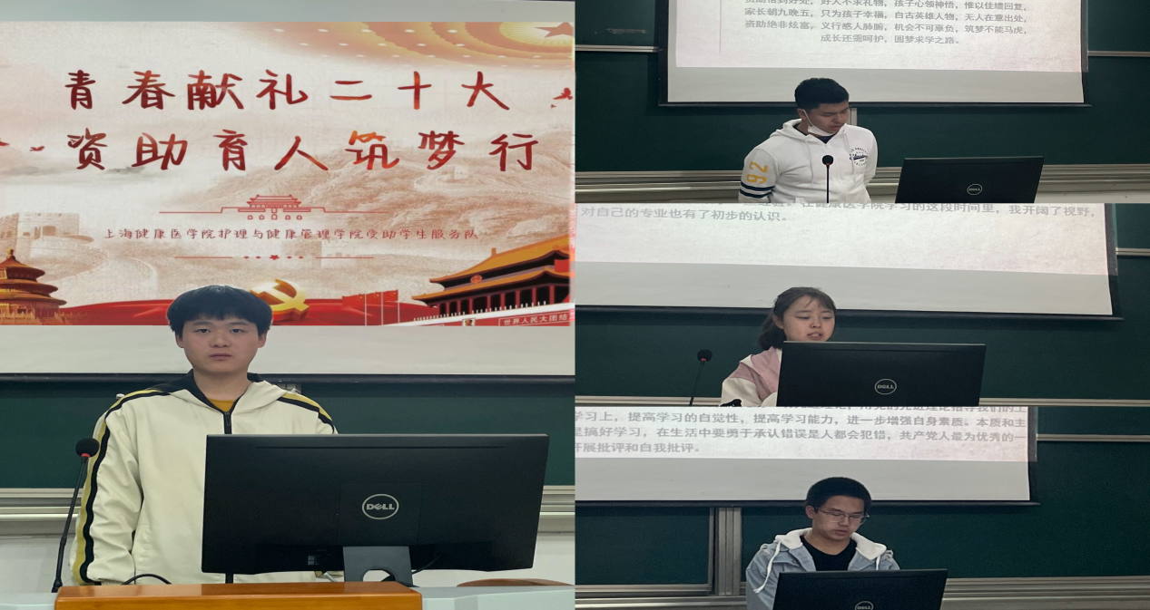 预赛初选于2023年3月28日晚18:30在北苑6101进行,参赛选手结合自身实际,以文章、诗歌、海报等形式表达了对党的二十大学习的感悟,以及个人接受资助后努力学习,以期回报社会关爱的心路历程分享。经过预赛初选,共有八位同学脱颖而出进入决赛。