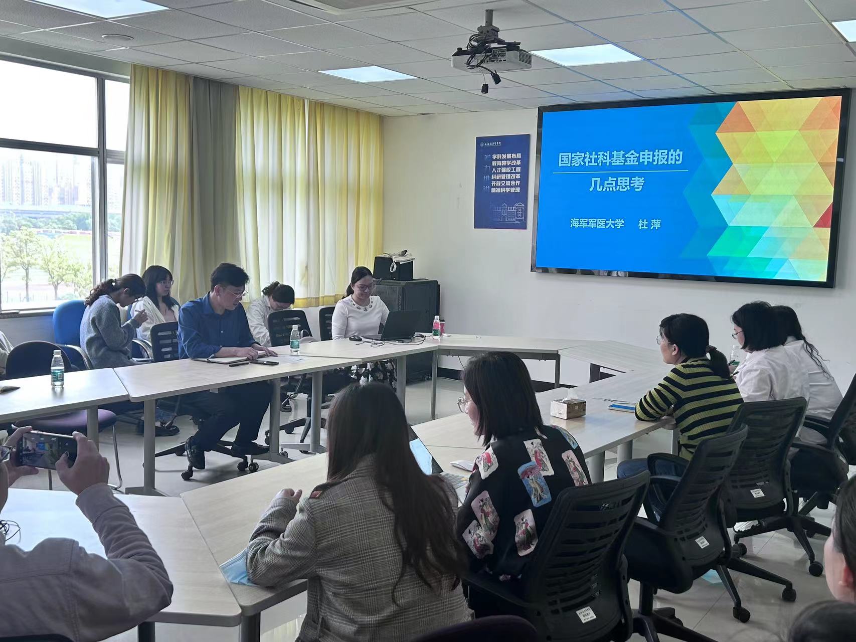 杜萍教授进行了《关于国社科基金申报的几点思考》报告,介绍了2023年国家社会科学基金项目申报要求、国社科基金项目分类、通讯评审意见表指标、申报资格要求,并详细阐述了如何把握高价值研究方向、如何提升论证说服力。