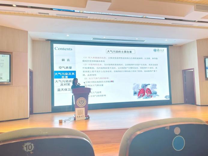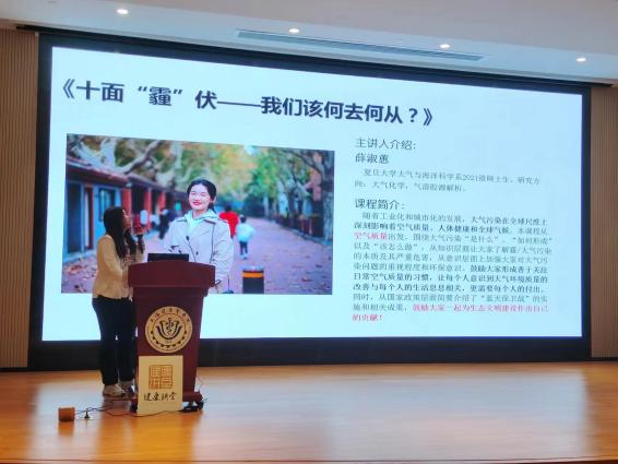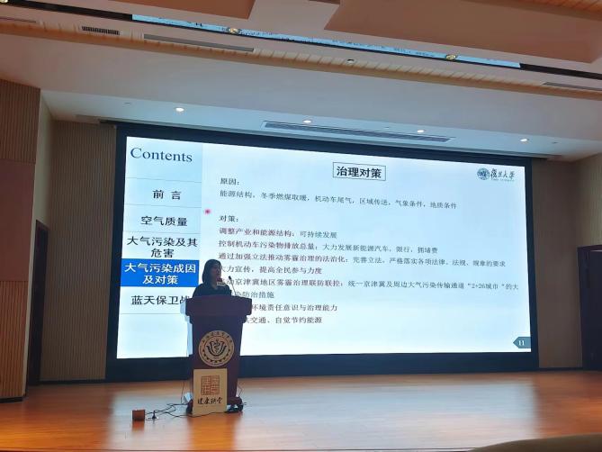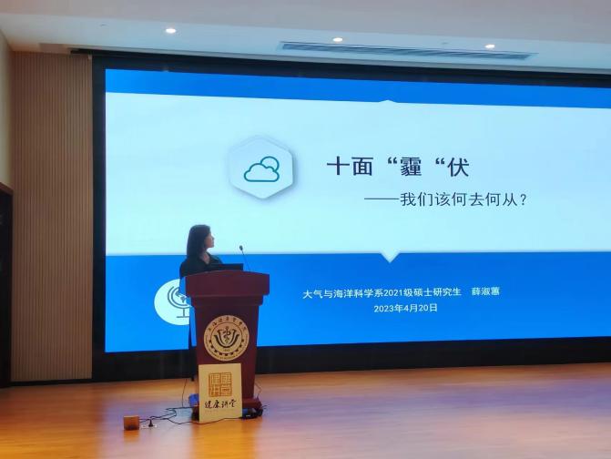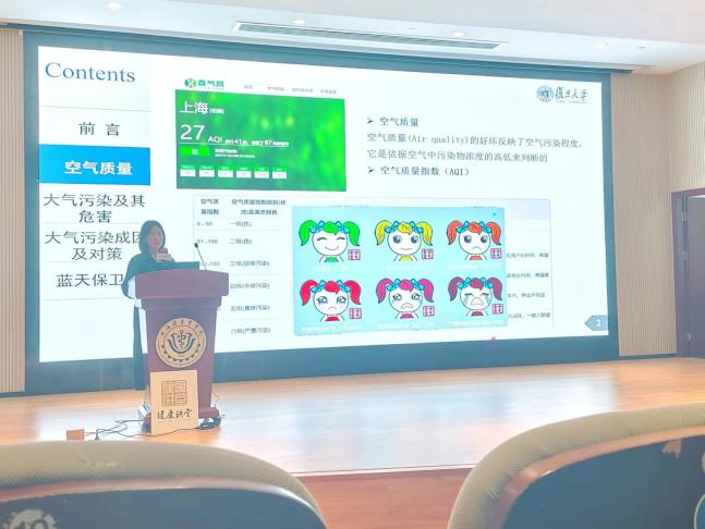 2023年4月20日健康讲堂第一期《十面“霾”伏——我们该何去何从?》顺利开展,圆满结束,本次讲堂我们有幸邀请到了复旦大学大气与海洋科学系2021级硕士生、优秀讲师薛淑蕙老师,她的主要研究方向为大气化学,气溶胶源解析。此次讲堂旨在加深学生们对大气污染的认识,正确掌握雾霾防护的知识,保护自身健康;鼓励同学们积极参与到大气治理、环境保护中去。