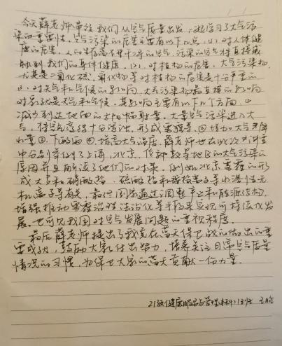 党的十八大以来,随着科技不断发展以及近年来对环境污染问题的重视程度日益提高,中国大气污染治理成效显著,大气颗粒物污染明显改善。但大气污染治理,道阻且长,始终不能掉以轻心。中国正经历着有史以来时间最短、幅度最大、受益人口最多的大气污染控制工程,面临着诸多科学、技术和政策的挑战,需要进一步加强法制建设、逐步优化能源结构、建设完善环境空气质量监测网络体系。空气质量与每个人息息相关,是民生最基本需求。党中央国务院高度重视生态文明建设和环境保护,因此薛淑蕙老师鼓励大家提高意识,努力学习,为打好蓝天保卫战,建设生态文明而不懈奋斗。