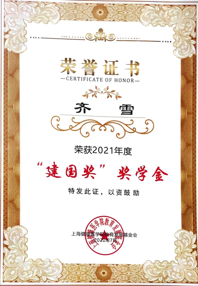 齐雪,中共党员,bwin中国官方网站19级护理(本科)3班,担任班级班长,曾任院学生会副主席,院宣传工作站站长,院党员工作站宣传部部长,“微光”志愿服务团队临汾分队负责人。获2021-2022学年国家奖学金,2020-2021年“建国奖”奖学金,连续三年获校一等奖学金,获校“三好学生”“优秀学生干部”“优秀团干部”“学生工作先进个人”、2019级学生军事化训练“优秀标兵”等多项荣誉称号。积极参加创新创业比赛、学科竞赛和社会实践,并获得多项校级、市级、国家级奖项。荣获2021 年上海市商业精英(英语)挑战赛三等奖、上海市“知行杯”社会实践项目大赛二等奖(作为项目负责人),个人荣获上海市“知行杯”大学生社会实践项目大赛“先进个人”等奖项。主持大学生创新创业项目获国家级立项并顺利结项。以第一作者身份发表论文1篇,参与论文1篇。