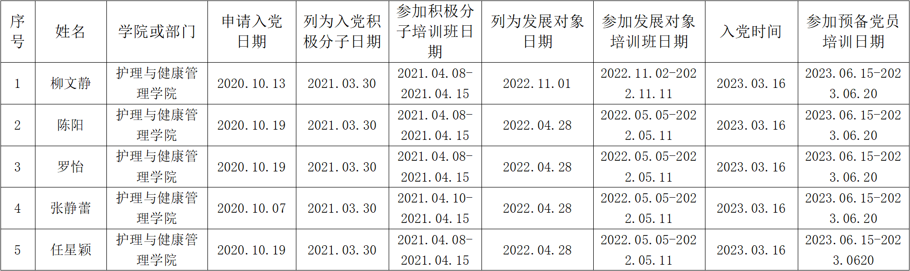 在听取党员、群众意见的基础上,经支部委员会审查,拟将以下中共预备党员接收为中共正式党员,并于近期召开支部大会讨论接收为中共正式党员问题。根据发展党员工作有关要求,现将有关情况公示如下:
