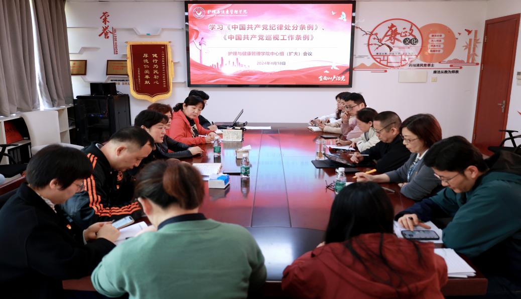 为深入学习贯彻习近平总书记关于党纪学习教育的重要指示精神,传达中央、市委、市教卫工作党委、校党委部署要求,推动学院党纪学习教育开好局、起好步,418日下午,护管学院党总支召开中心组学习(扩大)会,校党委副书记唐红梅出席了会议,全体中心组成员和各支部委员共同参会。会议由学院党总支书记郭戎静主持。