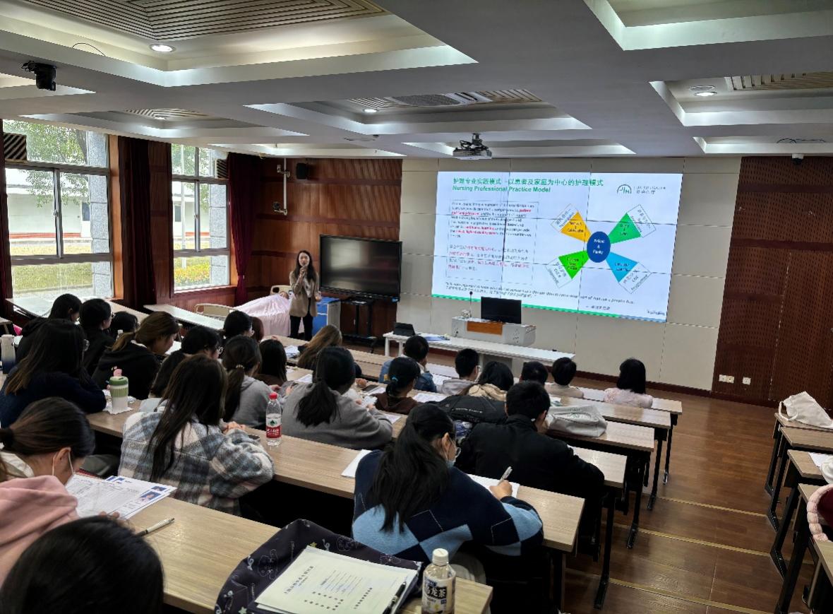 上海嘉会国际医院人力资源部协护理培训部向大家介绍了嘉会国际医院的基本概况以及护理专业发展,使同学们对医院有了一定的认识。随后,bwin中国官方网站2022届毕业生施宇和2023届毕业生谢晓莹分别向大家介绍了在嘉会的工作体会,并与在读的学弟学妹们进行深入交流。最后,上海嘉会医院人事部负责人为同学们更深一步介绍嘉会的横向与纵向培养计划、福利待遇与发展前景。