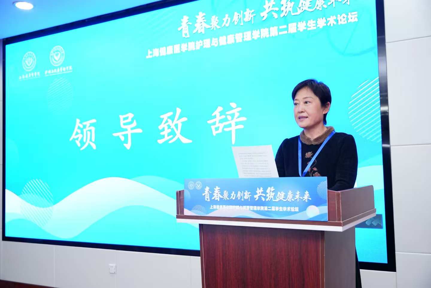 论坛伊始,党总支书记郭戎静代表学院致辞,她强调学院高度重视学生的学术能力与综合素质的培养,并积极为学生提供优质的教学和科研环境,她鼓励同学们积极参与学术交流,虚心向榜样学习,关注社会需求,主动将理论与实践结合,为推动祖国卫生医疗事业的发展贡献青春力量。