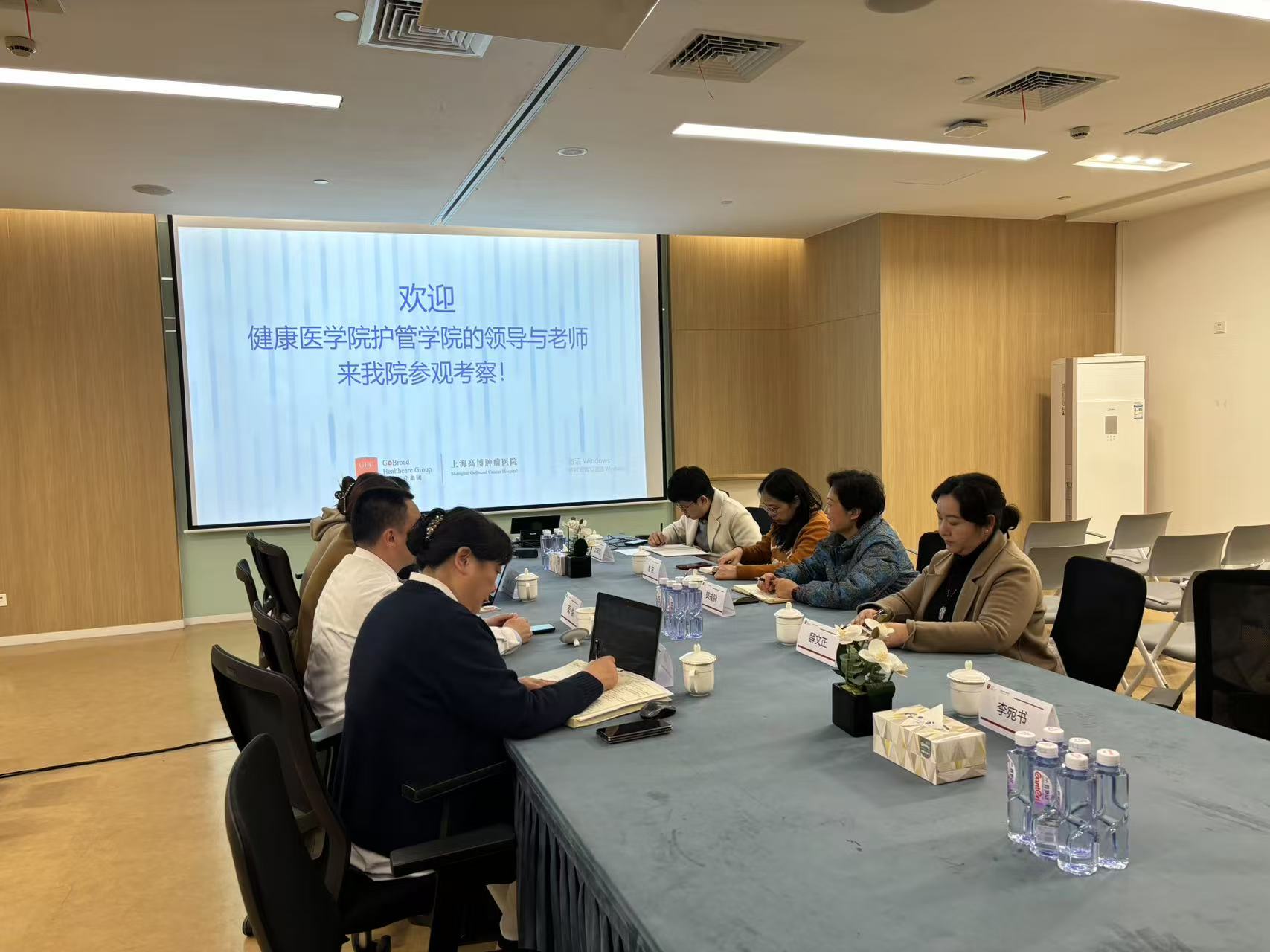 2025年2月24日下午,bwin中国官方网站党总支书记郭戎静、党总支副书记薛文正带队到访上海高博肿瘤医院。高博肿瘤医院副院长周俊、执行副院长黄胤、护理部总监钱君等参加座谈交流。