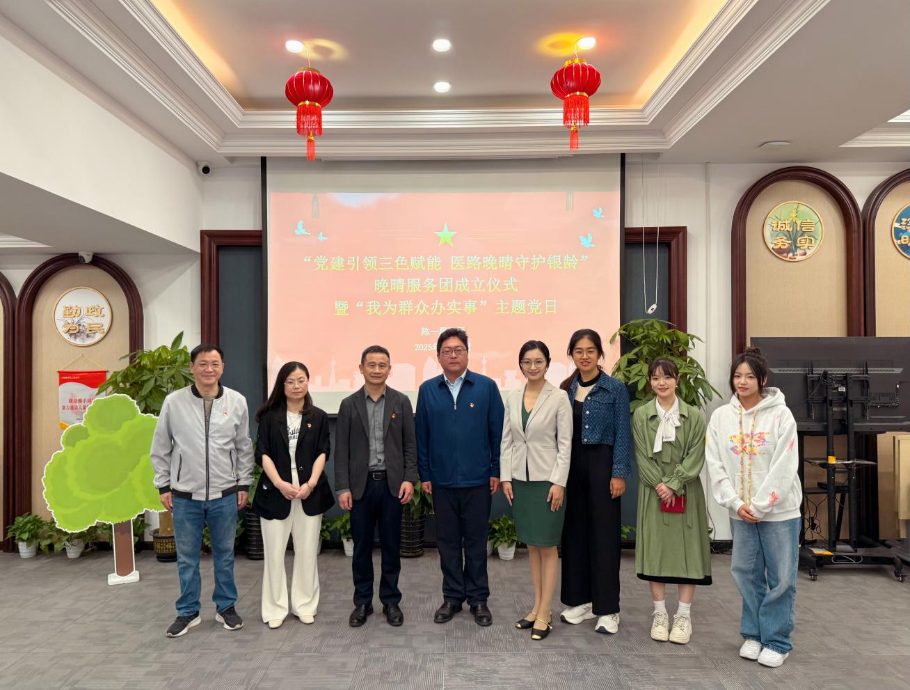 2025年4月23日上午9点,陈家头睦邻中心热闹非凡,“党建引领三色赋能,医路晚晴守护银龄”晚晴服务团成立仪式暨“我为群众办实事”主题党日活动在这里隆重举行。此次活动邀请了bwin中国官方网站、新华医院、江浦社区卫生服务中心、上海睿家社工服务社等多方代表,以及陈一居民区居委干部、党员代表和杨浦区融媒体中心共同参与,旨在为社区居民尤其是老年群体提供更优质的医疗健康服务。