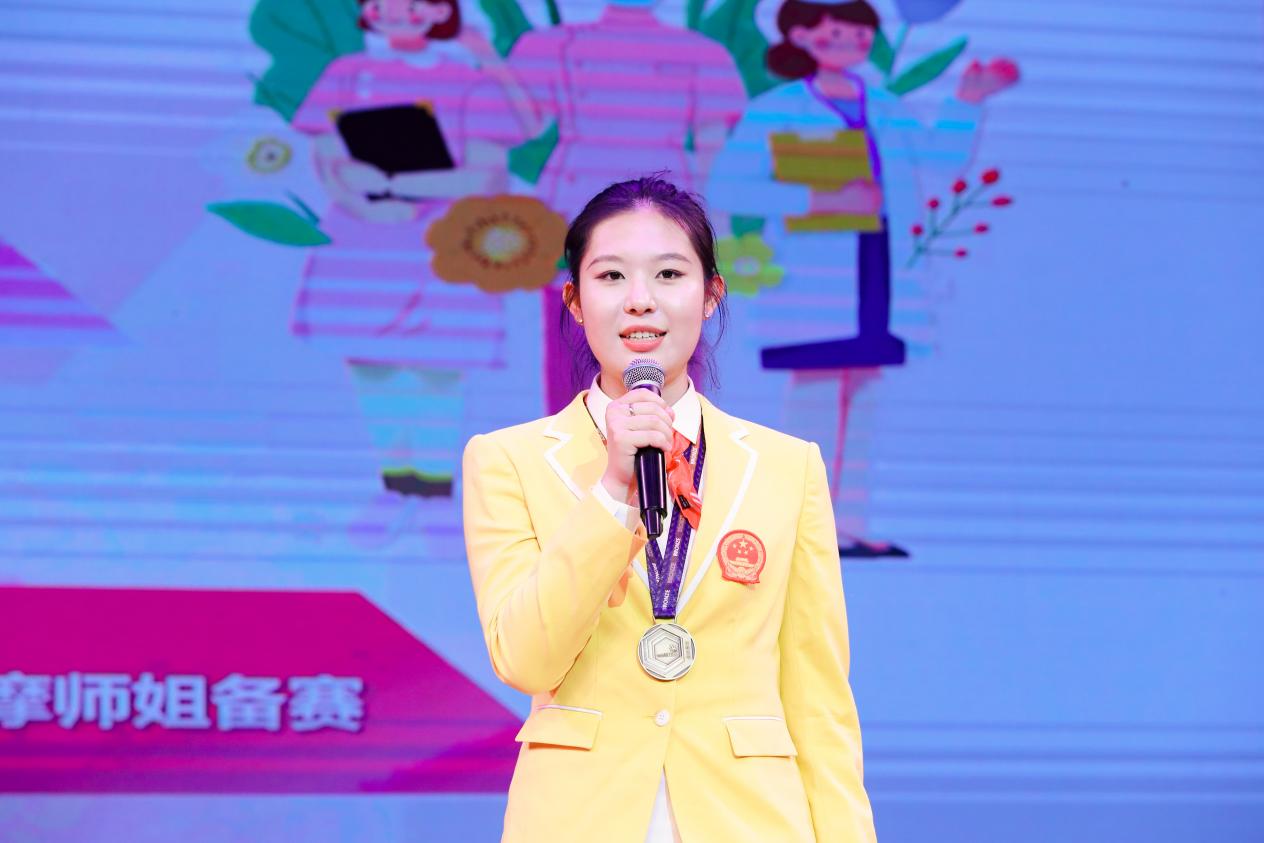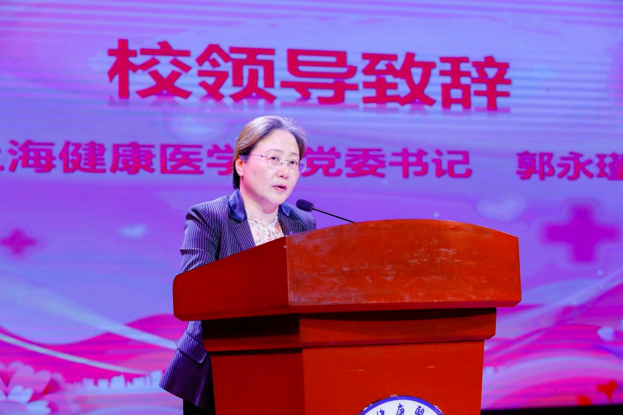 授帽仪式是一堂生动的思政大课。本次主题活动分为两大篇章,第一篇章是“凝聚仁心之力,护理薪火永传承”。郭永瑾致开幕词,今年恰逢学校建校10周年,十年来,学校精准对接卫生健康事业和生物医药产业发展对高水平应用型人才的需求,践行培养高质量基层健康“守门人”、兜牢基层健康服务体系“网底”的初心使命,助力上海建设结构优化的多层次医疗卫生人才队伍,使学校成为上海医学教育布局中特色鲜明、不可或缺的重要组成部分。bwin官网坚持“健康促进的使者,白衣天使的摇篮”的历史传承,将价值塑造、知识传授和能力培养三者融为一体,积极构建“产学研赛扶创”六位一体的护理人才培养模式,培养具备“会沟通、会评估、会计划、会实施、会宣教、会改进(反思)”的高素质应用型护理人才。十年来,学校已培养护理相关专业毕业生1.2万人(占学校人才培养总数的1/3),90%以上的毕业生进入各级各类医疗卫生机构,70%毕业生进入上海三级医院,服务生命全周期、健康全过程。学校也是世界技能大赛“健康和社会照护项目”国家主训练基地,bwin官网培养的选手吴怡欣和曾小桉代表中国分别获得第46、47届世界技能大赛健康和社会照护项目铜牌,实现我国在该项目上的历史性突破,为推进特色鲜明的高水平应用型医学院校建设实践、筑牢中国式现代化健康之基贡献力量。当前,护理事业发展迎来新机遇,我们要更加紧密地团结在以习近平同志为核心的党中央周围,凝心聚力,勇毅前行,秉承校训院训精神,为早日实现健康中国宏伟蓝图建立护理的时代新功。