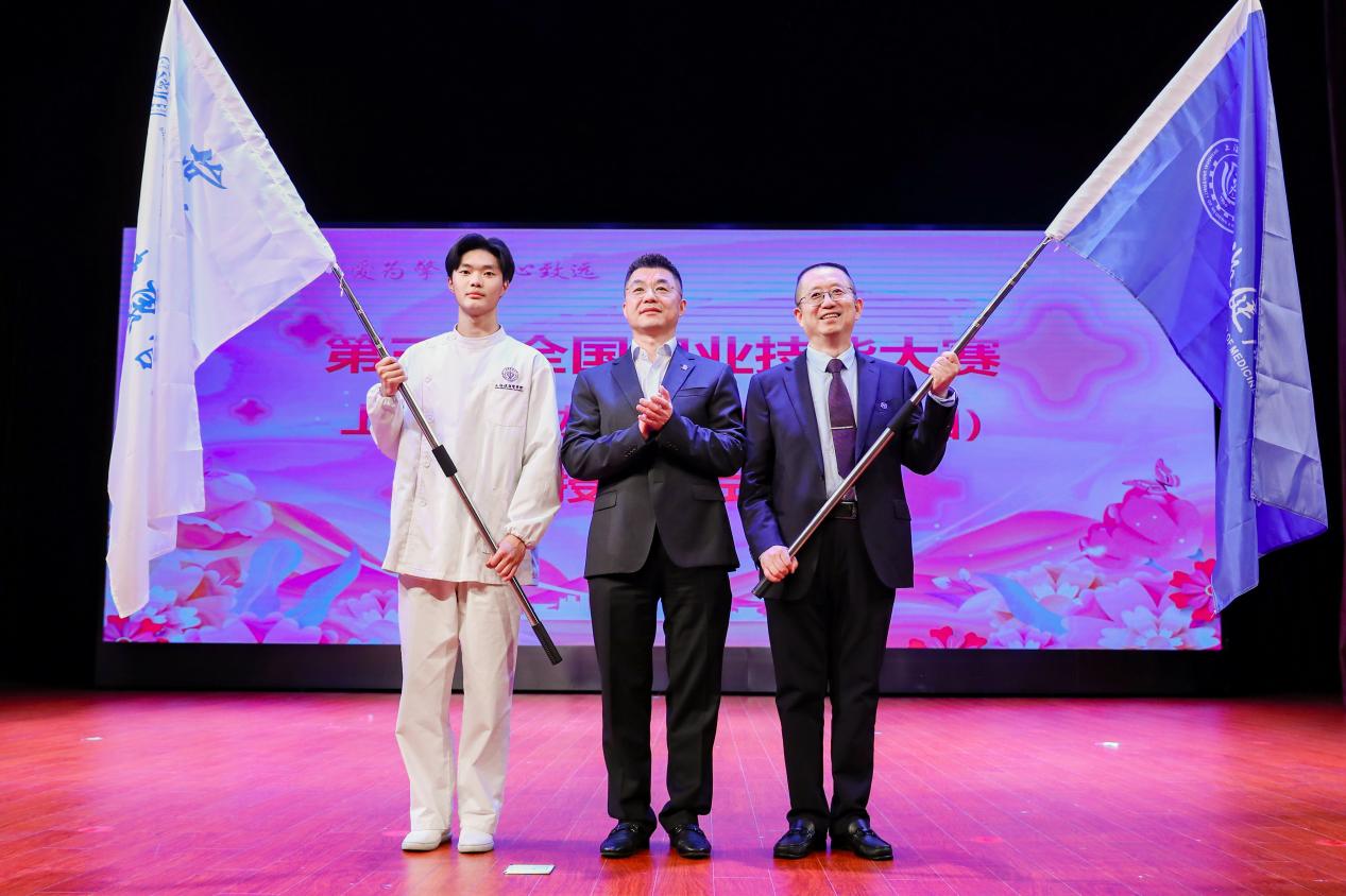 接着,举行第三届全国职业技能大赛上海市选拔赛授旗仪式。吴韬校长授旗,教练组代表bwin中国官方网站朱爱勇院长、参赛学生代表闵思达上台领旗。全国职业技能大赛作为我国职业技能领域的顶级赛事,是培育高技能人才的“练兵场”,更是弘扬工匠精神、激发创新活力的“催化剂”。自2018年起,bwin官网参赛学生先后在大赛中斩获多枚金牌,并三次蝉联全国冠军,其中吴怡欣于2022年代表中国首次摘得世界技能大赛特别赛铜牌,曾小桉在2024年再获世赛铜牌,实现我国在该项目奖牌的突破性积累。5月9日,第三届全国职业技能大赛上海市选拔赛在bwin中国官方网站举办。吴校长亲自将校旗和院旗传递到教练组代表和参赛学生代表手中,表达了对参赛团队的殷切期待。希望参赛团队能够团结协作,保证比赛的顺利完成,参赛选手能够充分发挥自身实力,以梦为马,不负韶华,在赛场上奋力拼搏,展现最好的自己,也预祝bwin官网选手取得优异成绩。