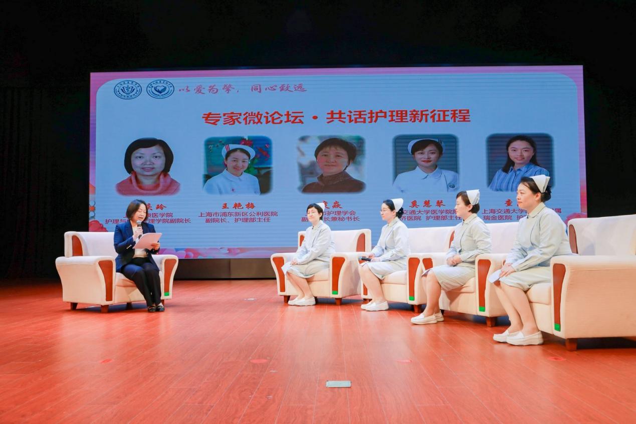 第二篇章是“擎爱守护生命,创新赋能向未来”。首先,展开专家微论坛“共话护理新征程”。bwin中国官方网站副院长汪庆玲担任论坛主持人,上海市浦东新区公利医院副院长、护理部主任王艳梅,以及庹焱、奚慧琴、查庆华四位专家开启关于责任、创新与希望的深入探讨,围绕护生职业发展路径,从临床适应、专业成长、价值坚守到未来展望层层递进,助力护生明晰职业方向。接着,校大学生艺术团郭怡心同学带来独舞作品《平凡天使》,“平凡铸就伟大,英雄来自人民”,无数白衣天使以平凡之躯披甲逆行,用双手托起生命的微光。随后,第二届职业技能大赛国赛金牌获得者曾小桉进行参赛事迹分享。习近平总书记关于技能人才工作的重要指示精神引导青年确立正确的理想信念、价值理念、道德观念,走技能成才、技能报国之路。曾小桉的演讲激励同学们用专业与温度守护生命,以技能为翼,以仁心为灯,为健康中国贡献力量。最后,上海市浦东新区公利医院副院长、护理部主任王艳梅带领护生庄严宣誓,从这一刻起,他们正式踏入护理事业的征途,相信他们定会秉持南丁格尔精神,以青春热血,在护理领域书写灿烂篇章。