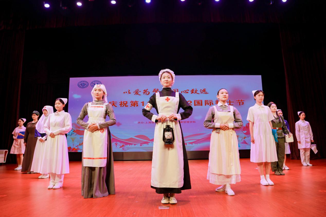 之后,进行了“携爱鸢尾开,五月天使来”护士服演变展示。一袭飘然白衣,是一颗纯真的心灵;一顶别致燕帽,是一项守护的重任。温柔耐心是她们的特质,白衣天使是她们的名字。百余年的护士服演变,是无数护理人用白衣写就的人类文明史。