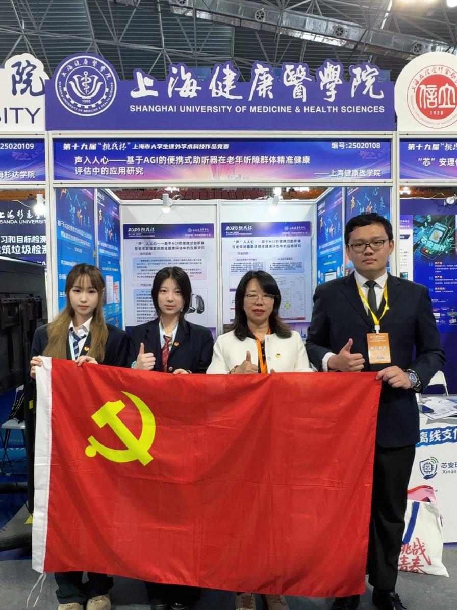 AHFE双创组学生团队的项目“声入人心--基于AGI的便携式助听器在老年听障群体精准健康评估中的应用研究”在王婷婷教授、张帅老师和丁可凡老师的共同指导下入围本次挑战杯上海市决赛,实现了健康服务与管理专业在该赛事0的突破,同时实现了几年以来bwin中国官方网站在该赛事的再次突破。团队是由bwin中国官方网站的徐已昕、嵇晟、姚珮然、王馨婕、琚宪梦、陈一赫、沈佳奇和朱震宇等八位多专业学生构成的一支跨专业学科团队。团队目前已发表相关论文3篇、1项发明专利、1项实用新型专利、3项外观专利和10项软件著作权等均为学生一作。项目最终凭借“精准医疗+人工智能”双核创新,在第十九届“挑战杯”上海市赛中荣获科技发明制作B类二等奖及校级特等奖。自创立伊始,AHFE双创团队始终秉承“实践育人”核心理念,指导教师团队的王婷婷教授和董恩宏教授坚持以创新赛事为育人载体,持续激励学生突破舒适边界,在挑战中实现自我超越与意志淬炼。团队着力构建“非功利化”成长生态,破除“唯结果论”的价值评价体系,看重竞赛中实践的过程性,将竞赛过程转化为能力锻造的熔炉。团队始终坚持以赛事为镜,照见成长轨迹;以实践为尺,丈量进步空间,通过“做中学、学中创”的闭环培养模式,引导学生在真刀真枪的实战中锤炼创新能力与职业精神,真正实现“以赛促学强本领,以学促用育英才”的双创教育目标。这种“成长型思维”导向的培养机制,既孕育出敢闯会创的硬核实力,更铸就了知行合一的价值追求,为新时代创新型人才培养提供了生动范本。