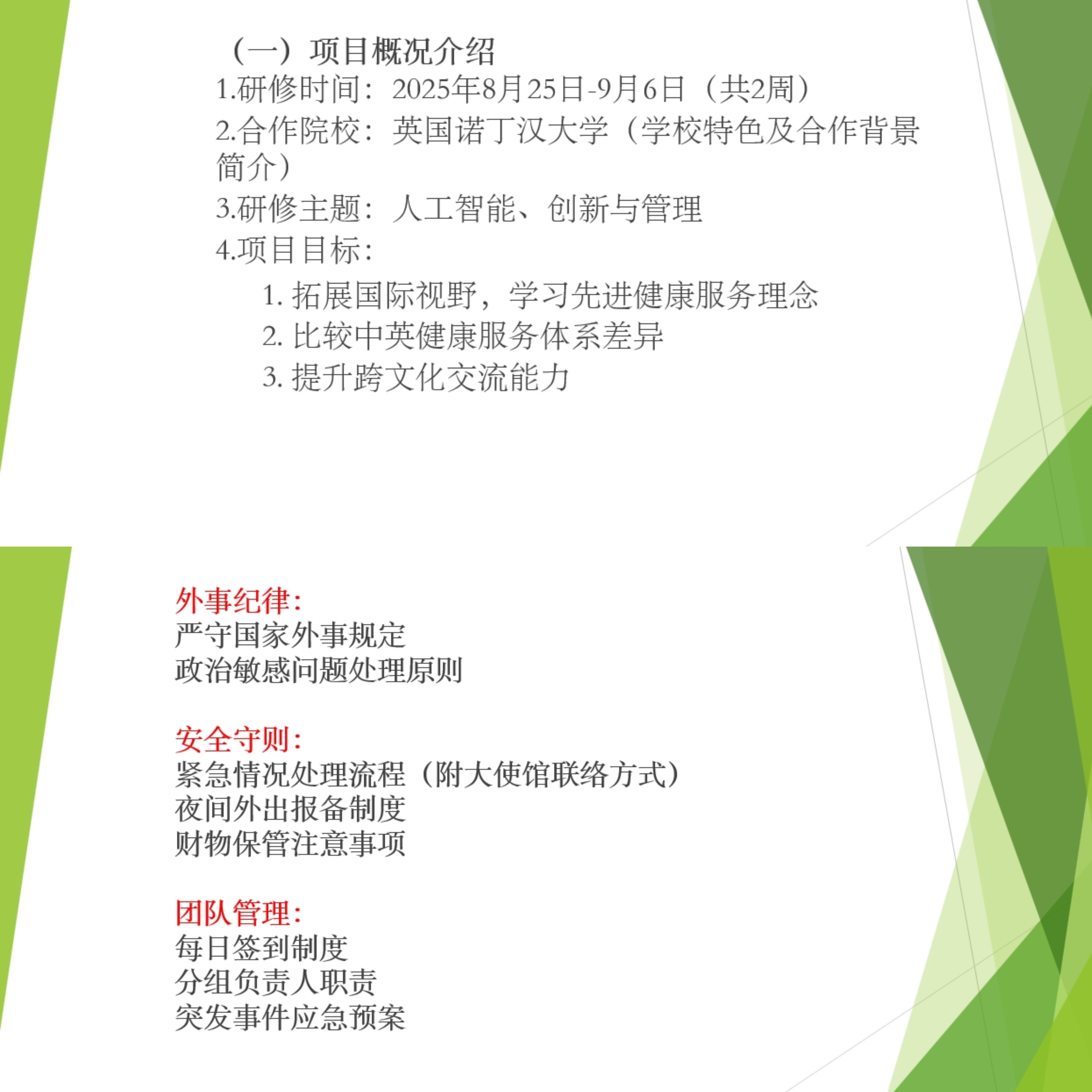 二、安全规范:强调海外学习期间的人身与信息安全注意事项;