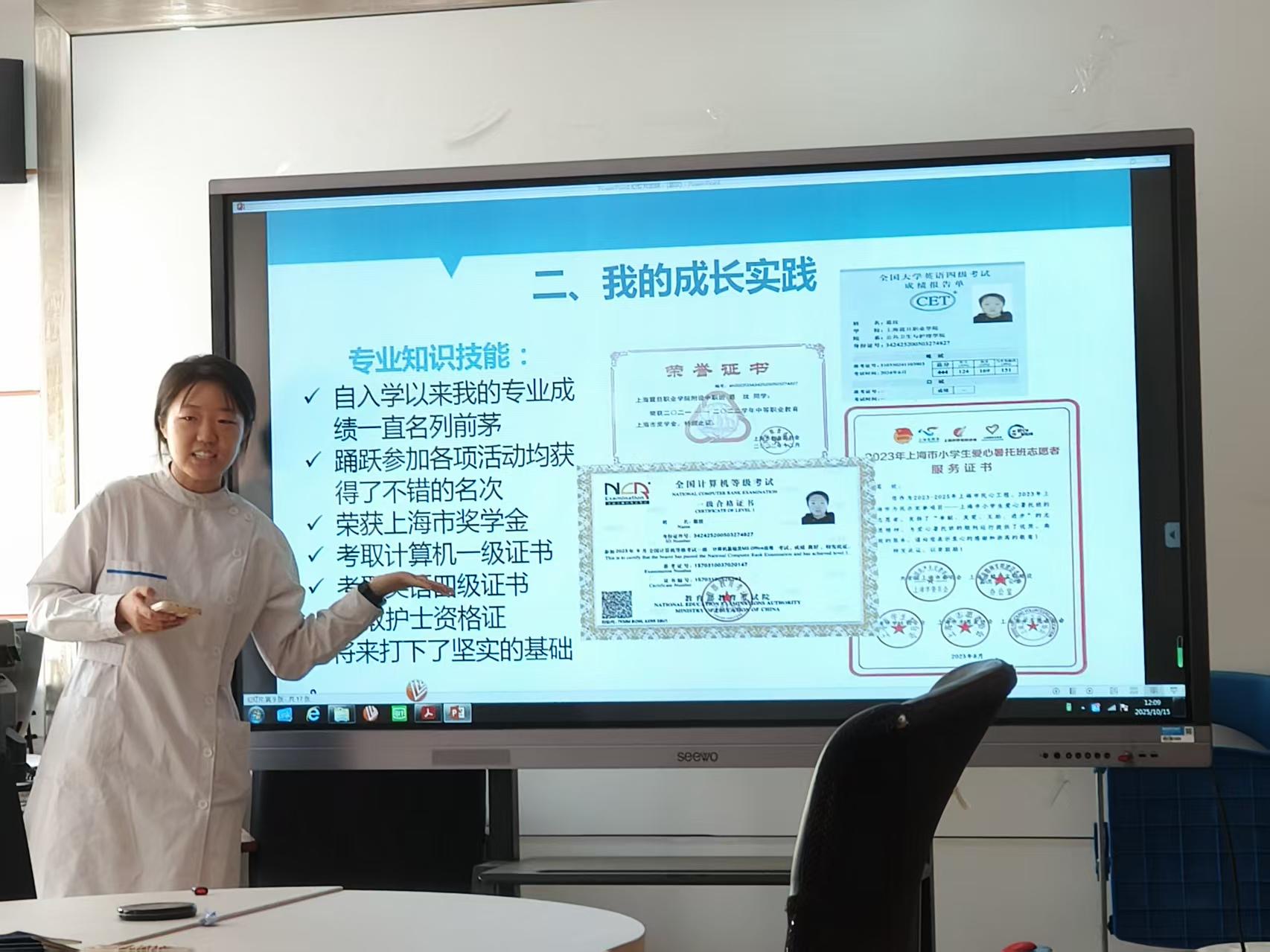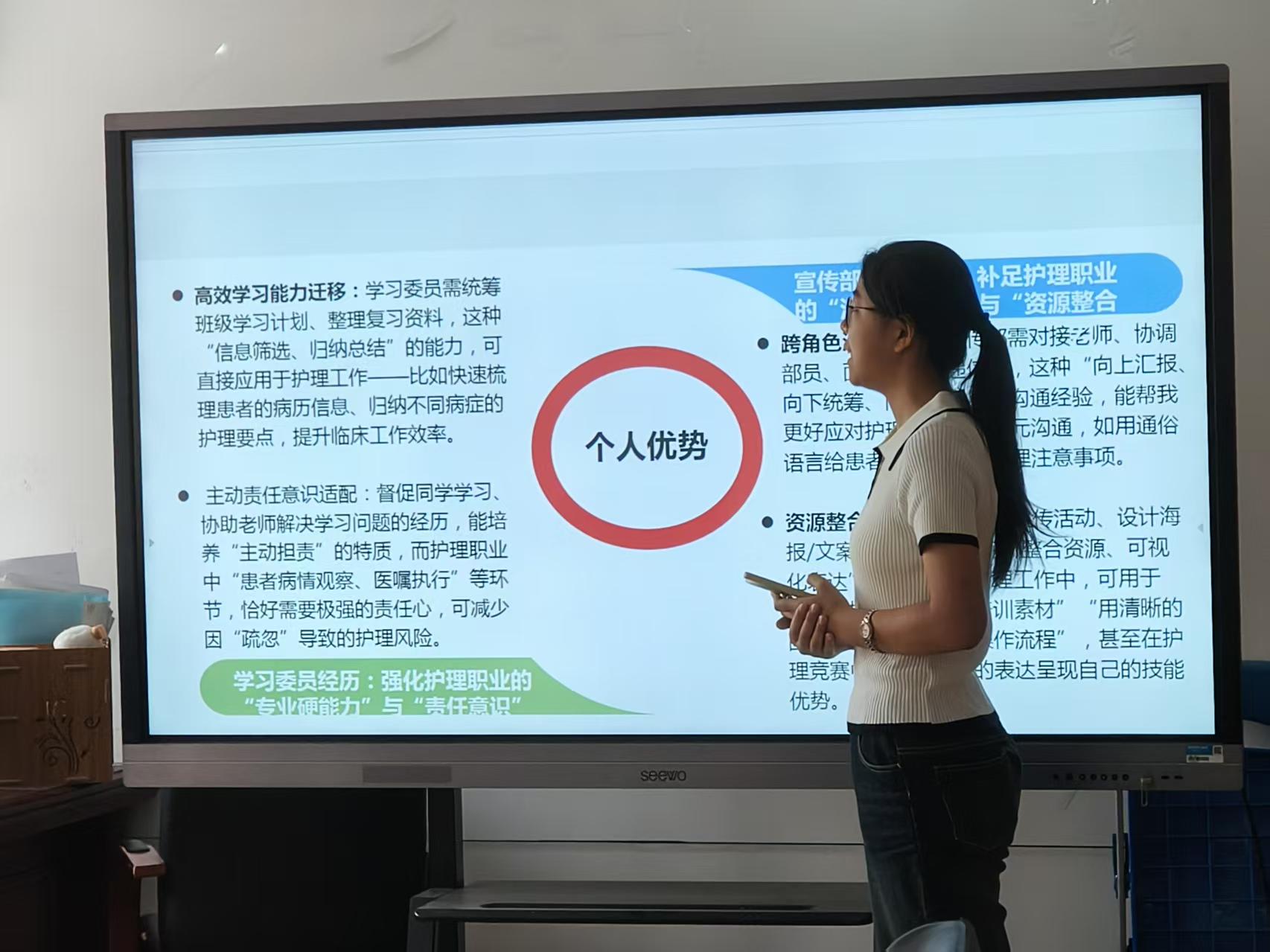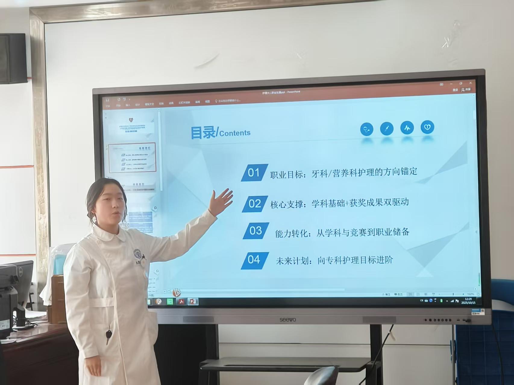 在答辩过程中,选手们分析自身发展优势,结合学习和实习经验,表示成为优秀护士,不仅需要扎实的专业技能,还需要钻研精神。护士不仅是一份职业,更是一种使命。护理工作者肩负着生命的重任,必须具备严谨的态度、精湛的技术和敏锐的观察力。选手们总结经验,将基础知识转化为实践能力。主动学习,将国际护理人文理念融入日常学习中,转化为温暖行动。