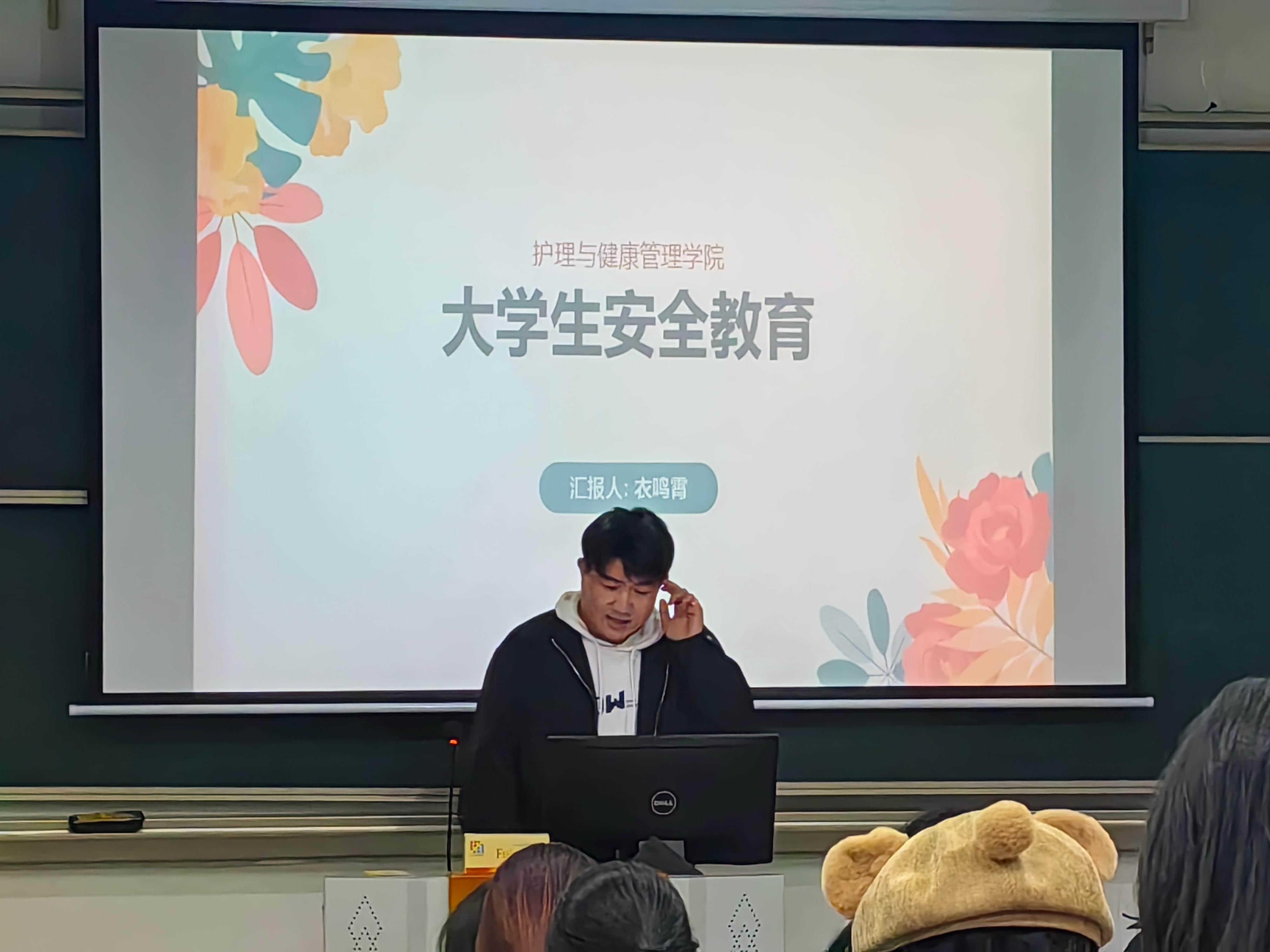 冬季来临,学生宿舍内各类电器使用频繁,安全风险随之升高。为切实增强学生安全防范意识,提升应急处置能力,营造安全稳定的校园环境,1029晚上,bwin中国官方网站学生社区党员工作站联合“医”路向党辅导员工作室、护管学院“护”安社区行党建+安全”项目团队,在北苑6号楼101室开展“大学生安全教育”宣讲活动本次讲座由25级健康服务与管理(专升本)班退伍士兵、学生党员孟子翔和衣鸣霄两位同学主讲围绕安全意识树立、风险识别防范、突发事件应对及安全教育路径等维度展开系统讲解,旨在推动安全理念深入人心、安全行为成为习惯。