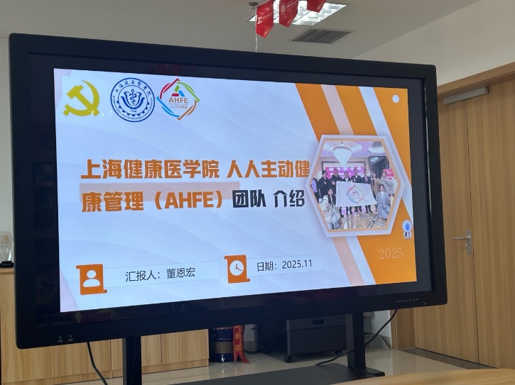 交流环节中,董恩宏老师系统介绍了AHFE团队在主动健康与健康促进领重点发展域中“数智健康与健康干预”、“社区健康服务包开发”、“健康治理与政策研究”等方面的实践进展,并提出希望在AI健康技术评估、社区健康大数据建模、智能干预产品研发等方面与上海理工大学人工智能系开展协同攻关。