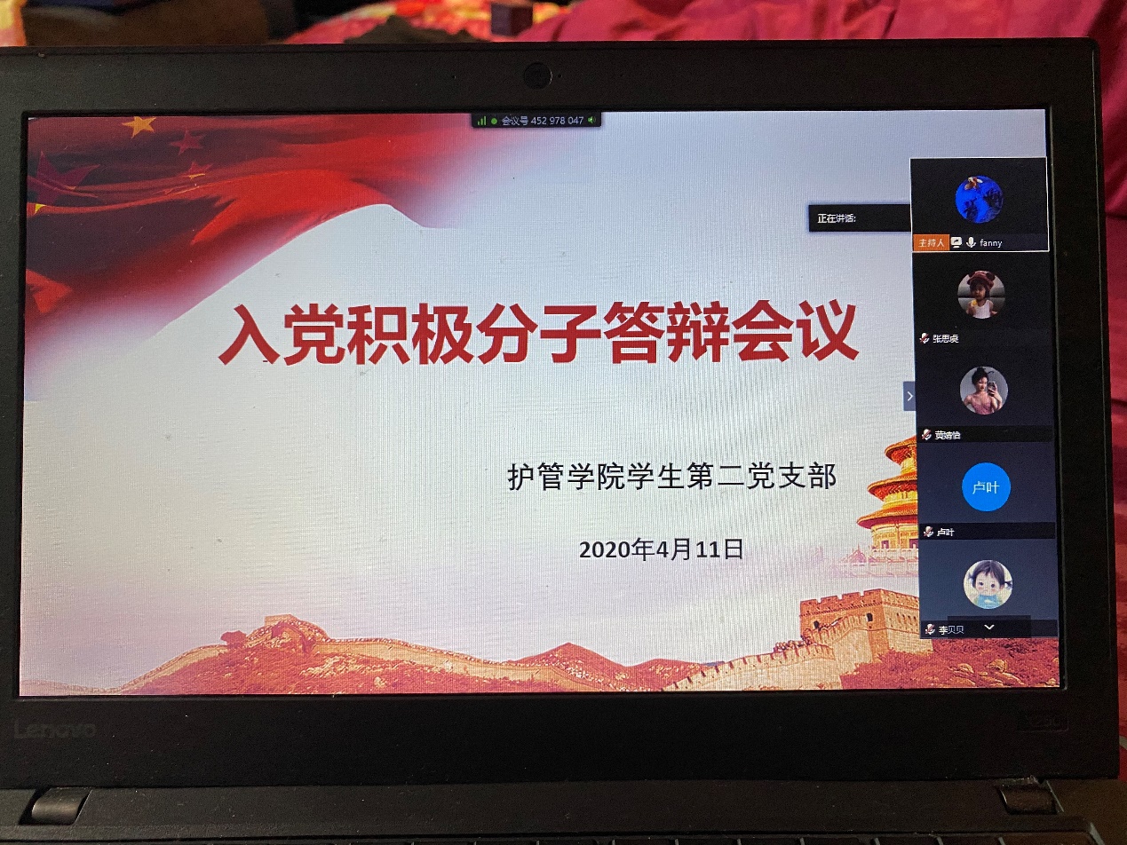 为加强积极分子队伍建设,严把党员“入口关”,筑牢党员队伍“蓄水池”,2020年4月11日13点,护管学院学生第二党支部通过腾讯视频会议举办了春季入党积极分子答辩会,共21名积极分子参与了答辩。本次会议分为两个答辩小组,分别由支部书记吴芳芳同志和党员代表赵昶力同志主持,参与的评委有组织委员丁可凡老师、纪检委员郭利军老师、宣传委员吉洁老师以及部分党员代表,各评委本着公平公正的原则,确保把好党员“入口关”。