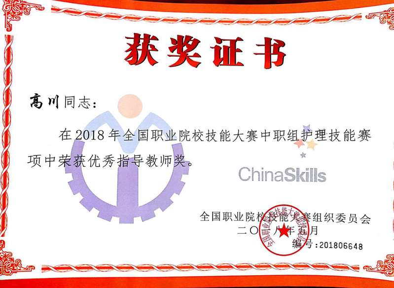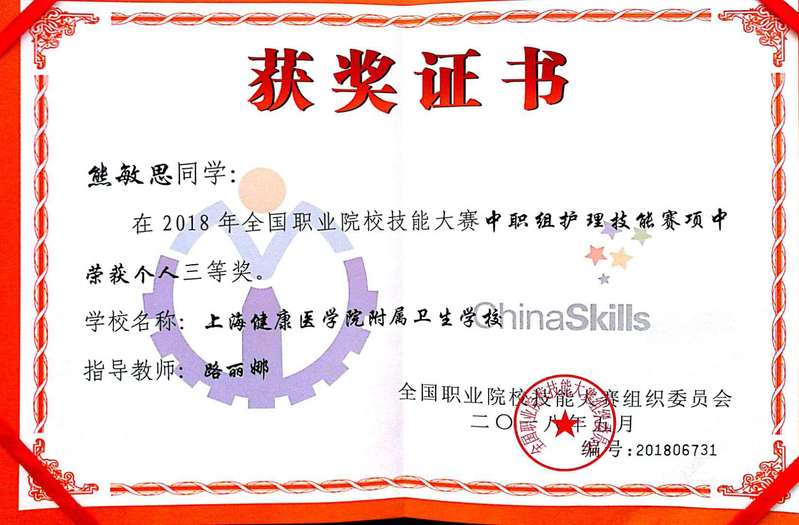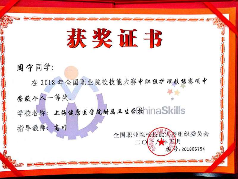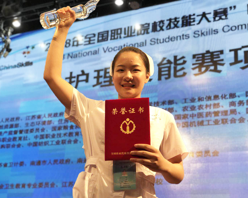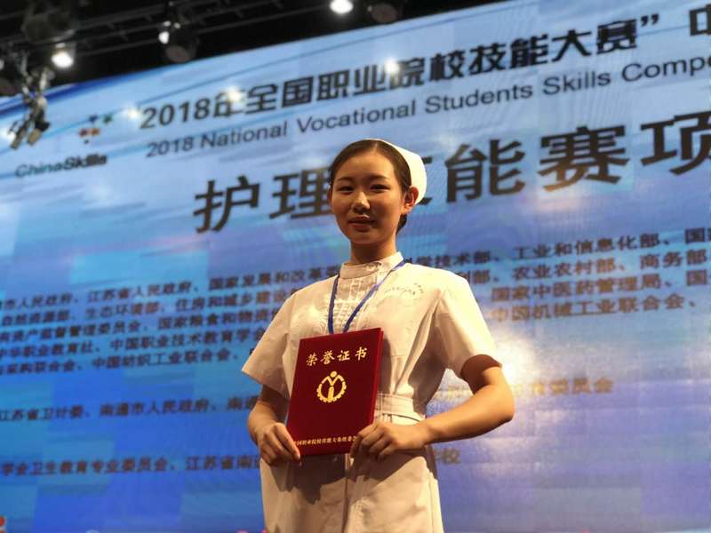 5月24日,2018年全国职业院校技能大赛中职组护理技能赛项在江苏省南通卫生高等职业技术学校闭幕,经过3天的激烈角逐,bwin官网2015级护理专业中高职贯通班学生周宁代表上海队在33支省市参赛队157名参赛选手中脱颖而出,摘取一等奖,熊敏思同学获三等奖,高川老师获 “优秀指导老师”称号。