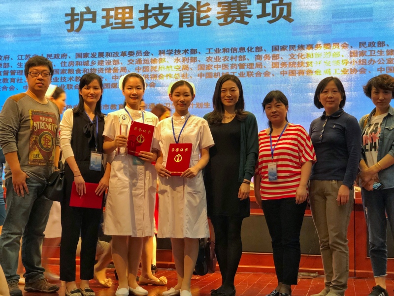 备赛过程中也得到了各方力量的关心和支持。护理前辈、行业专家亲临指导,医学院bwin中国官方网站派出教师给予帮助,各分校在人手上鼎力支撑,学校护理实训中心全体老师、教务科、总务科等职能部门为备赛和参赛提供了全程保障。学校领导多次到训练现场看望和鼓励参赛选手,徐敏副校长作为领队全程陪同参赛,市教委教学研究室领导赴南通探望和慰问。