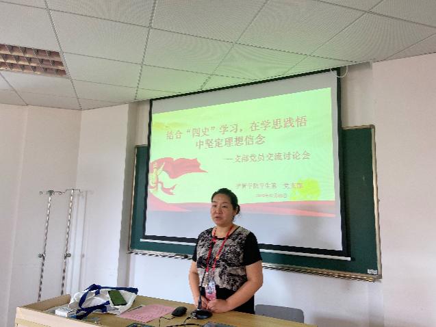 紧接着,纪检委员庞海荣老师生动形象地向大家讲述了四史学习的目的和意义,内容详实丰富,她说到,“开展四史教育,不仅仅是讲历史故事,更关键是引导学生认识自身的历史使命,树立使命意识,自觉地把自己的志向和国家的命运联系起来,实现个人成才和中华民族伟大复兴的有机结合”。支部党员通过她的讲解更加了解自身的历史使命,深刻认识了共产主义,坚定了政治立场,进一步树立了人生发展的正确方向。