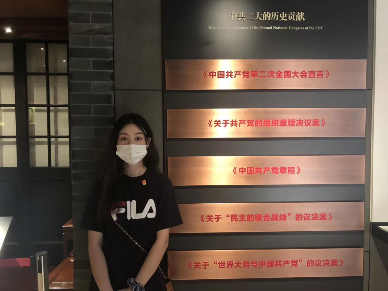 预备党员王宠也参观了中共二大会址,她感触很深,说道:历史是最好的教科书,通过这次参观学习,近距离接触历史,一个个再现的场景让我再次感受了中国共产党创建初期波澜壮阔的历史风云以及老一辈中国共产党人为国为民的革命精神和民族大义。前辈虽逝,但精神长存,新时代赋予我们新的使命,我们青年学子接过历史的接力棒,就要发挥好模范带头作用,先从思想上加强,把党的精神学好学透,激发使命感和责任感,再与当下实际相结合,落实到行动上。毕竟,空谈是无用的,行动才是最有力的证明。我们在社会主义的道路上继续前进的同时,最重要的是不忘初心,在学思践悟中坚定理想信念。作为医学生,我们肩负着国人健康的重任,更要永葆从医初心。我们要时刻牢记,中国共产党人的初心和使命,就是为中国人民谋幸福,为中华民族谋复兴。因此,追寻党的历史足迹,重温党的历史,才能更加深入了解党的精神内涵,才能更加爱党爱国,更加自觉为党和人民服务。我觉得这也是四史教育的重要目的。