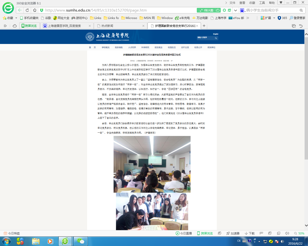 为深入贯彻落实社会主义核心价值观,加强毕业生党性意识,做好毕业生党员离校相关工作,护理国教联合党总支学生党支部于6月7日上午在浦东校区北苑9号楼611教室举行了2016届毕业生党员承诺书签订仪式,护理国教联合党总支书记方秀琴书记,毕业班辅导员,毕业生党员参加了本次离校教育活动。