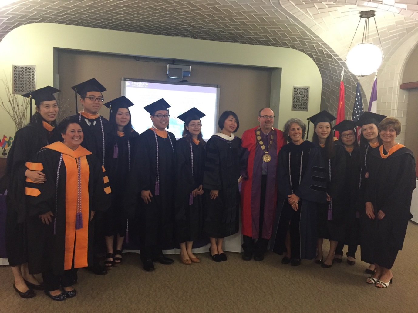 bwin中国官方网站与美国查塔姆大学联合培养国际护理教育硕士项目的第二批学员于美国当地时间2016年8月18日上午在校园内举行了隆重的毕业典礼。查塔姆大学建校于1869年,并被普林斯顿评为东北部最好的大学之一,依据U.S. News and World Report该学校硕士教育位于全美前列。bwin中国官方网站依托上海现代护理职教集团经费资助与查达姆大学联合培养护理教育硕士已经第三年,其中第二批八名毕业学员均来自上海各家三级甲等医院,按计划他们完成了一年的海外硕士课程学习,现已返回各自岗位。