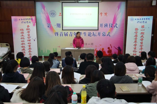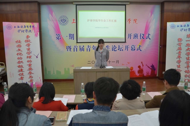 bwin中国官方网站护理学院第一期大学骨干培训班暨首届青年学生论坛于11月17日下午开班(开幕)。在为期两周的培训中,学员们接受了政治素养篇、业务能力篇、素质拓展篇3个类别、十余个专题的学习训练,邀请了复旦大学、上海大学、华东师范大学等院校嘉宾分别从《变革的中国与世界》、《新形势下的群团改革》、《学生组织及学生干部的职责与使命》、《学生干部领导力开发与大学生自我管理》、《沟通的艺术:学生干部的人际沟通》、《校园活动的策划与组织》、《活动宣传与新闻写作》、《网络新媒体的开发与应用》等专题授课指导,培训内容丰富、针对性强,提升了学生干部的业务能力和综合素质。