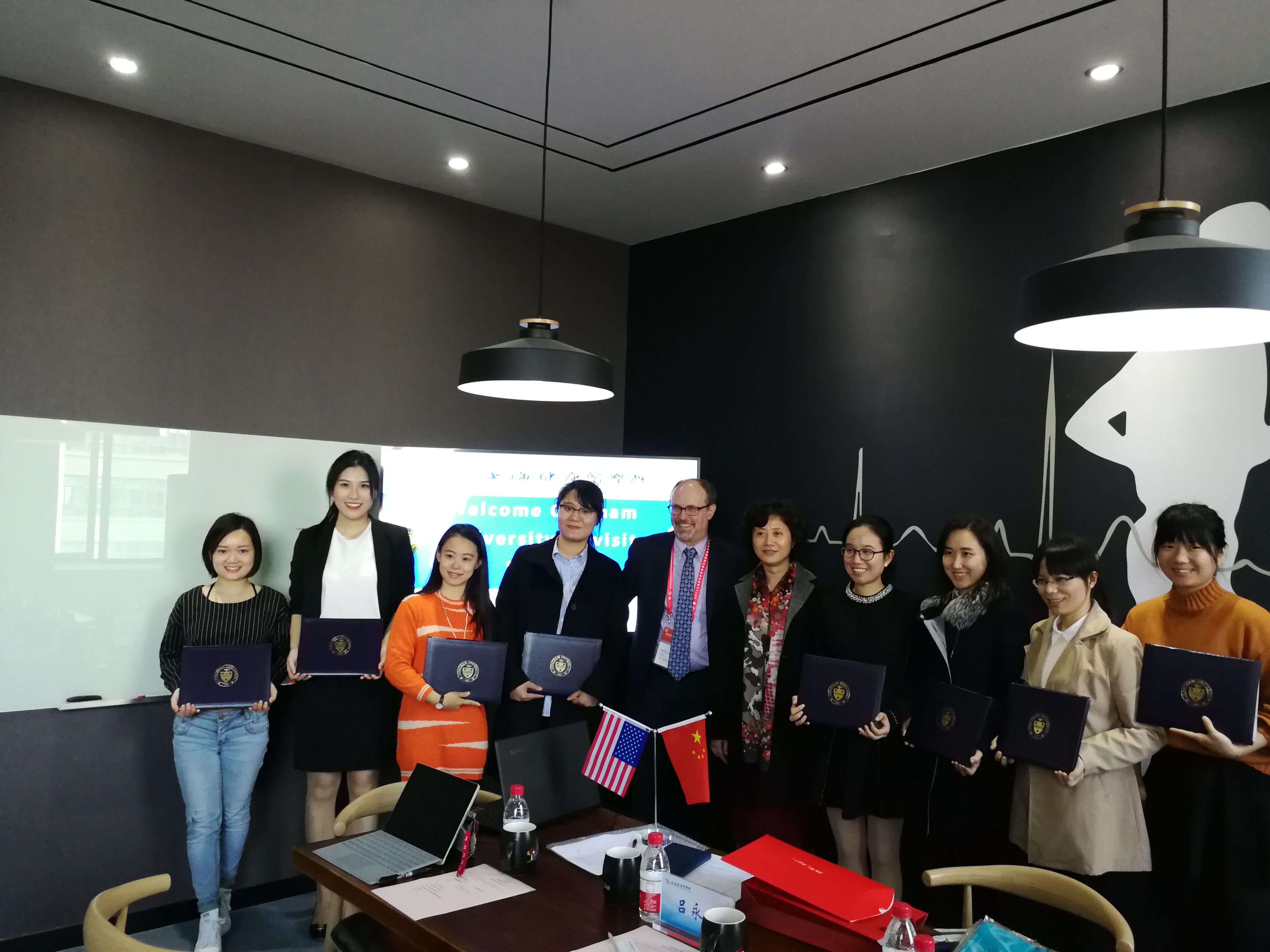 会上,唐红梅副校长欢迎Finegold 校长首次来bwin官网进行交流访问,基于之前的合作基础,希望双方在今后的对等交流上能够走得更稳、更长远,确保将双方交流合作的项目落到实处。Finegold校长感谢学校的邀请,今后中美两所大学,除了护理专业以外,更希望与bwin官网的健康服务与管理专业开展全面的交流合作。同时,双方就学历衔接、联合培养、师生研修等问题进行了深入的探讨,并达成共识。最后,唐红梅副校长与Finegold校长一起为第三届美国查塔姆大学护理硕士项目(简称MSN)的学生颁发毕业证书。
