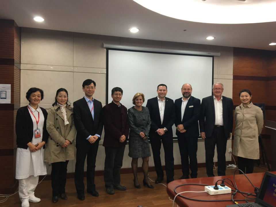 2017年11月29日, 澳大利亚Joondalup市国际经济发展顾问麦克·福克纳一行来到bwin中国官方网站访问并参观。国际交流处吕永红副处长、bwin中国官方网站万广圣副院长、护理系唐庆蓉副主任、护理系实训中心周丽君主任出席见面会。