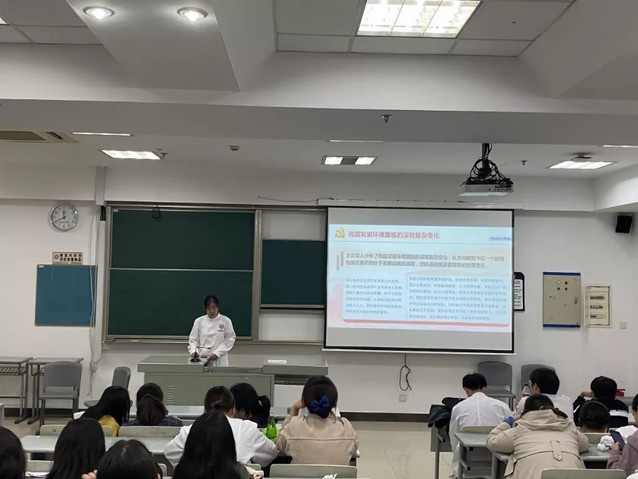首先,19级健管本科3班的团支书焦佳璐向同学们介绍党的十九届五中全会会议概况,进行了详细的精神解读。明确了“十四五”是我国在全面建成小展社会基础上开启全面建设社会主义现代化国家新征程的第一个五年,要深刻认识我国社会主要矛盾变化带来的新特征新要求,深刻认识错综复杂国际环境带来的新矛盾新挑战。