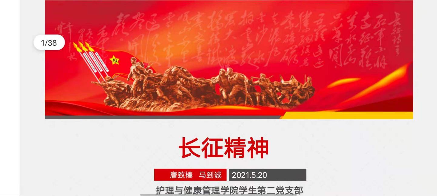 唐致椿同学带领大家学习了长征的历史,和长征精神的内涵,红军指战员在长征途中表现出了对革命理想和事业无比的忠诚、坚定的信念,表现出了不怕牺牲、敢于胜利的无产阶级乐观主义精神,表现出了顾全大局、严守纪律、亲密团结的高尚品德。这些构成了伟大的长征精神:不怕牺牲、前赴后继,勇往直前、坚韧不拔,众志成城、团结互助,百折不挠和克服困难。”