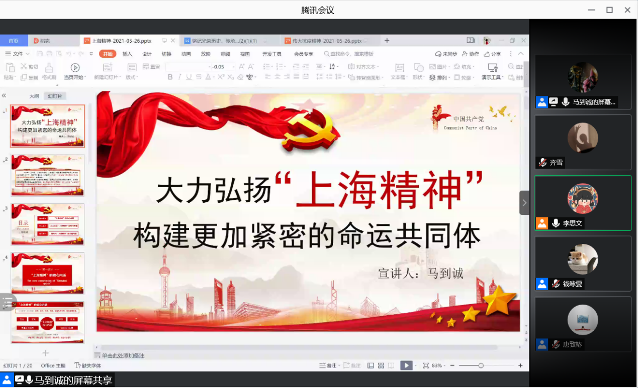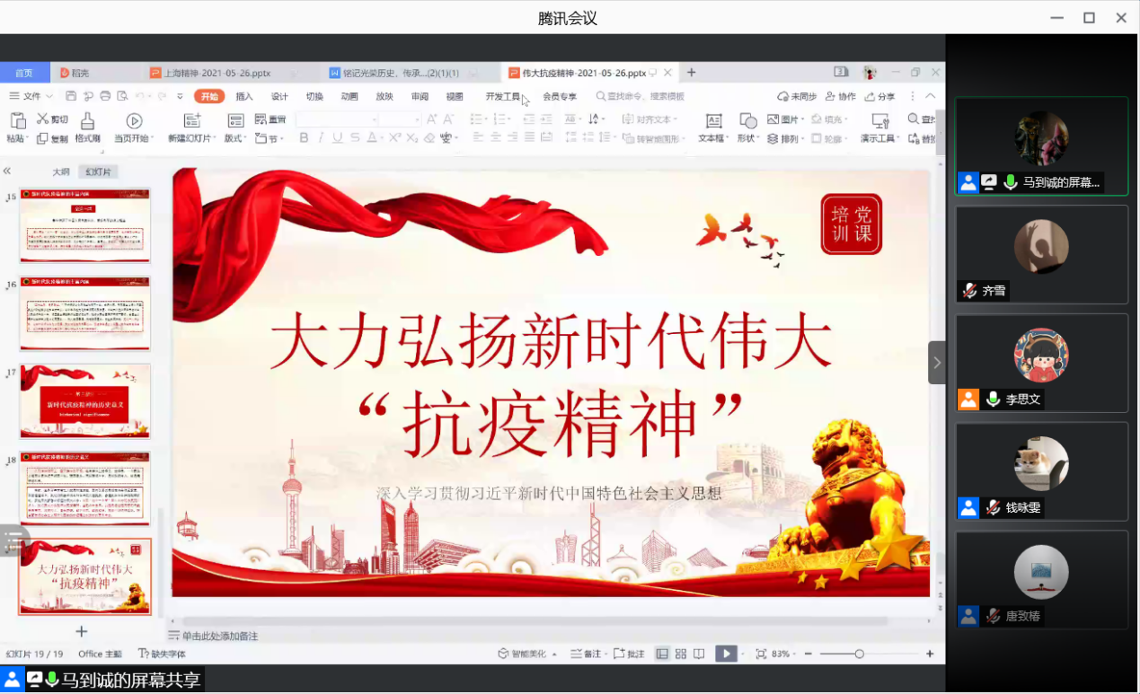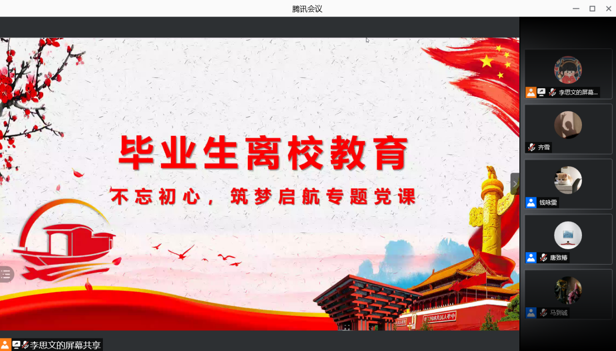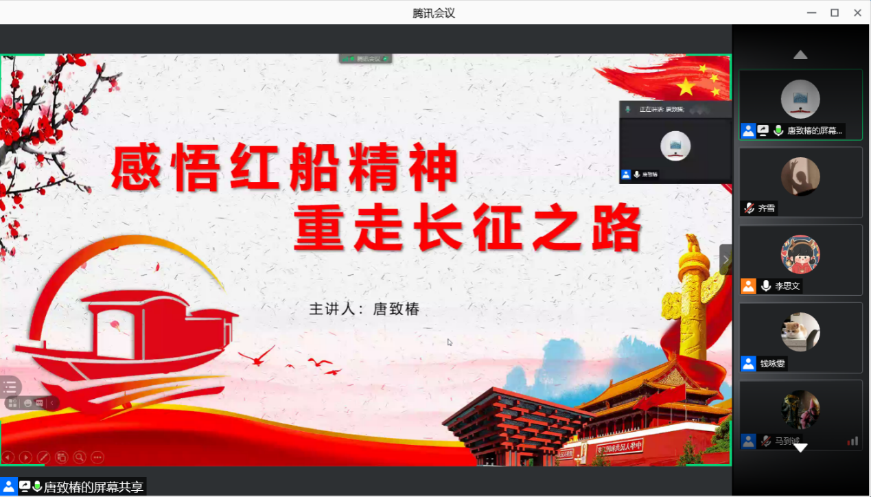 2021年6月26日下午18:00,bwin中国官方网站学生党支部在线上腾讯会议平台,开展了毕业生离校教育——不忘初心,逐梦启航专题党课。毕业生党员、预备党员、发展对象、入党积极分子均参加。今年是中国共产党成立一百周年。党的百年历程的伟大实践,引领中国人民实现民族独立和人民解放,实现国家富强和人民幸福,迎来了从站起来、富起来到强起来的伟大飞跃。习近平总书记指出:“在一百年的非凡奋斗历程中,一代又一代中国共产党人顽强拼搏、不懈奋斗,涌现了一大批视死如归的革命烈士、一大批顽强奋斗的英雄人物、一大批忘我奉献的先进模范,形成了一系列伟大精神,构筑起了中国共产党人的精神谱系,为我们立党兴党强党提供了丰厚滋养。”正是这些伟大精神,在革命、建设和改革的各个历史时期激励着一代又一代人昂扬奋进。