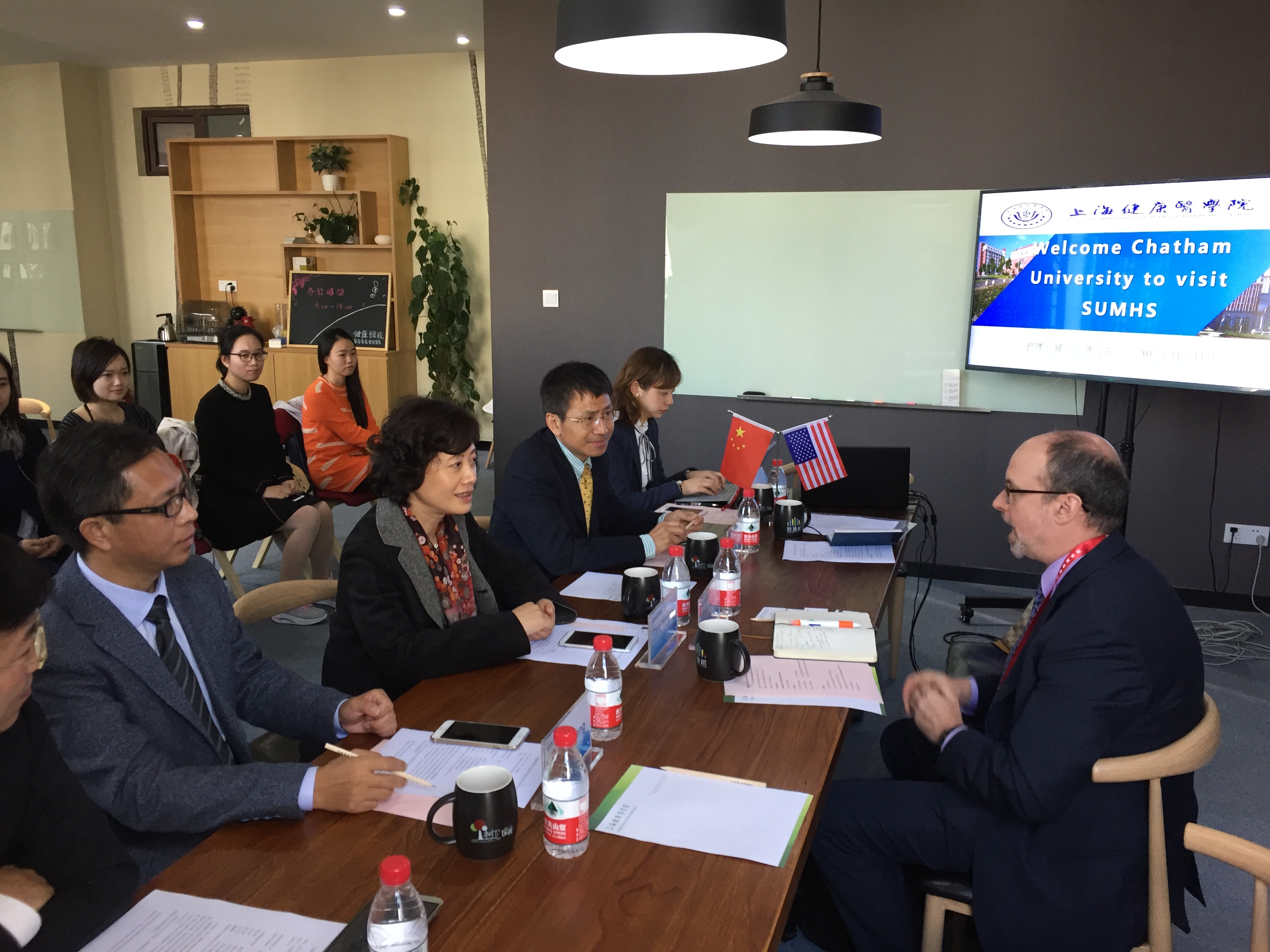1111日,国际护理技能大赛开幕之际,美国查塔姆大学校长David Finegold应邀参加开幕式,并对bwin官网bwin中国官方网站进行访问交流。会议在南苑健康客栈举行,由国际交流处吕永红处长主持,唐红梅副校长、护管学院主要领导及专业教师代表出席会议。
