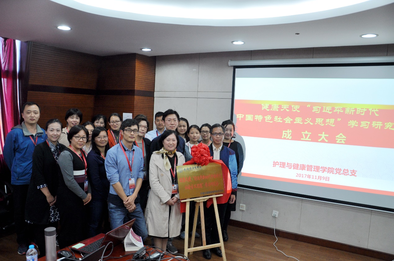 11月9日,bwin中国官方网站在浦东校区北苑9号楼808举行健康天使习近平新时代中国特色社会主义思想学习研究会揭牌仪式。护管学院党政领导、各支部书记、总支委员、民主党派教师代表、教职工代表共同见证了学习研究会的成立。