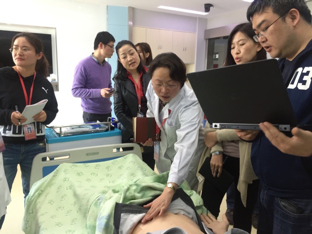 程序员们为老师们展示了通过电脑程序来控制模拟人各种不同的病情变化、病例编制软件、编写病历程序等;同时介绍了如何根据考核内容设置一系列病情变化引导学生判断和给出相应的处理。让老师们基本清楚了怎样利用这套智能化模拟程序培养学生的临床思维能力、敏锐识别能力和恰当处理能力,希望借此帮助学生提高逻辑思维、理论应用、实际操作能力。