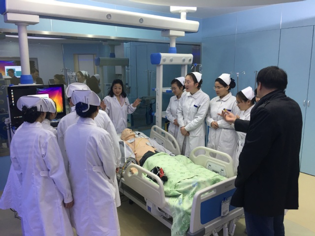 首先,挪度公司的程序员给学生展示了临床模拟演练在复旦大学护理学院中的教学应用视频,师生可以运用不同的形式模仿临床病理展开教学,从而使教学模式更接近于临床,并且能够培养学生临床思维能力。这令同学们感到十分新奇和向往。