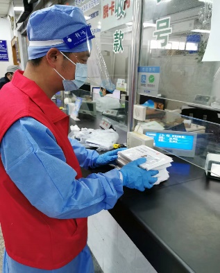 在代配药小队里,富玥同学主要负责核对病历信息,药品清单,发药,登记表格等。为了避免被感染的风险,从早上穿上隔离服带上口罩那一刻开始到结束,除了中午吃饭手部消毒取下口罩外,其他时间不会摘下口罩,所以连水也喝不了,只能等结束回家后再补充水分。富玥的爸爸则是是负责外出代配药的,每天早上7点左右就要到社区报到。他们每天楼上楼下,来来回回不知要跑几次,贴身衣物都湿透了。