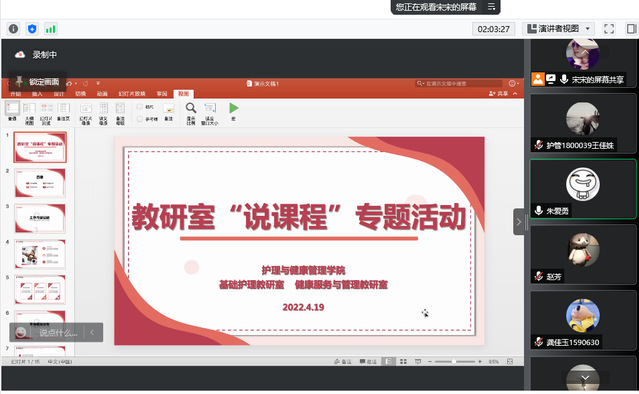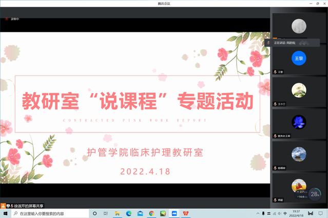接到学校专项工作任务后,结合前期专家预评估的反馈情况,学院召开了专题教学工作会议,提出了“专家指导、全员参与”的基本方针,要求以教研室为单位组织开展“N说”活动,全体教职员工参加,学院领导班子全程参与,邀请学校专家点评,做到全院教职员工思想上重视、行动上参与,实现全体教师真正了解N说、深入参与N说、切实践行N说,从而提升教学和服务质量。