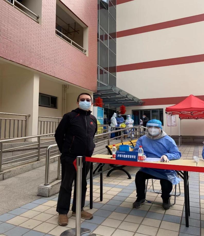 他已连续进住校13周有余,特殊时期,他通过走访寝室,谈心谈话、线上班会等各种方式掌握在校学生的情况,了解学生在准封闭管理期间的困难和需求,将解决思想问题与实际问题相结合。他还是北苑11号楼的住楼辅导员,每天要负责统计所在宿舍楼475名同学做核酸或抗原信息,保证不落一人信息无误,甚至有时还要给同学们送餐送医疗物资到宿舍门口。除此之外,他作为志愿者参加了校内的消杀小组,定时对所分配楼栋进行消杀,为师生提供安全的学习和办公环境。