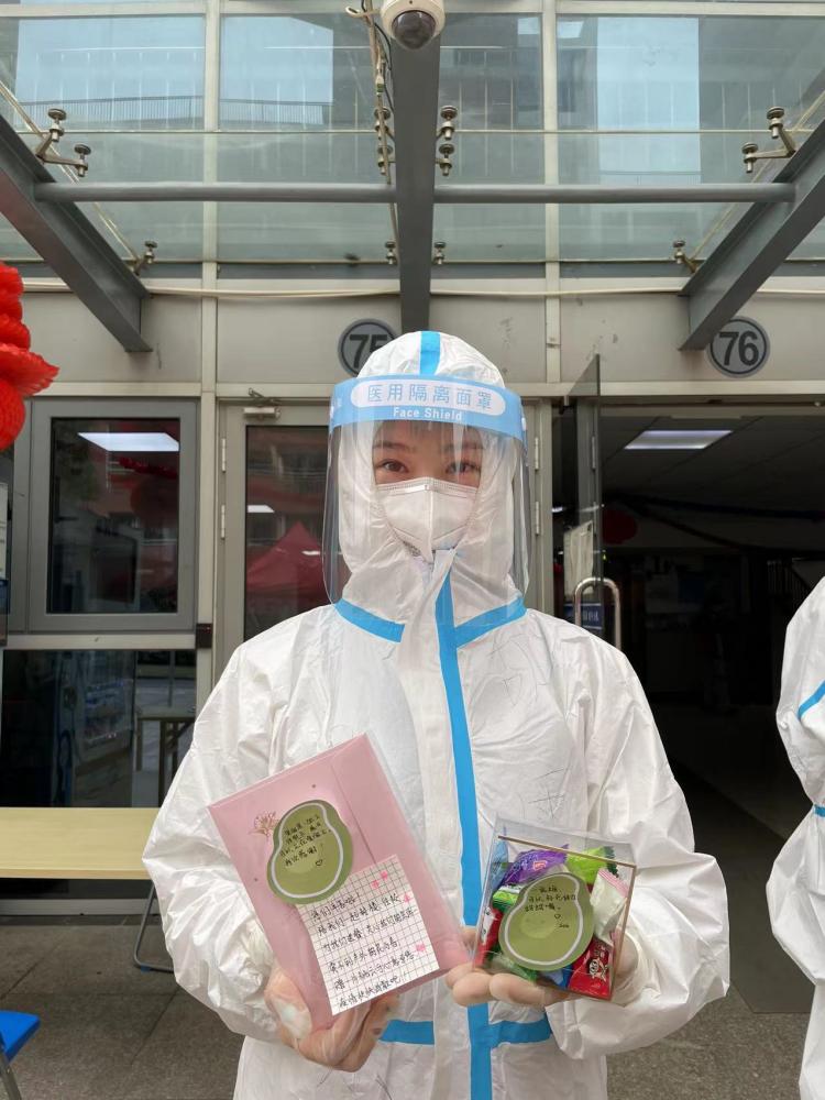 3月17日北苑12号楼准封楼管理中,她统筹管理各项事务安排,忙里偷闲接受采访时说道:“作为bwin中国官方网站一名普通的辅导员老师,坚守一线是我的职责所在,每一位老师都在各自的岗位中默默付出着。其实这次能够有机会和孩子们真正意义上的同吃同住同生活,对于我来说是非常宝贵的。我们从3月17日凌晨到现在,每天一大早校领导和朱院长就站在楼前为我们所有人保驾护航,最近上海的天气大风夹杂着小雨,核酸检测的医护人员存放医用垃圾的塑料袋都要绑着几层胶带固定,但所有人都义务坚守在岗位上,领导们一站就是一上午,陪伴着我们。作为楼内保护孩子们的我们,基本上每天早上都是5:00起床准备分发早餐和核酸检测工作,全天都没时间能坐下休息一会儿,但每一句:'谢谢老师、老师辛苦了',我真心感觉没有什么是战胜不了的。”