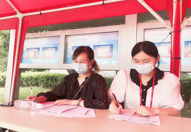 统计数据,一丝不苟。进校后,吴老师迅速加入了核酸专班,负责北苑教工等重点人群的签到登记工作。炎炎烈日下,她每天至少提前半个小时到达核酸现场,同志愿者们一起维护秩序,提前做好准备工作。“XXX您今天离校了吗?抓紧来做核酸了!”对于名单上没有按时来的人员,她总是耐心打电话一一核对,催促,确保不漏检一人。“疫情数据”时刻变化,每天检测的人数,离校人数,她都了然于心,保证数据准确无误,工作开展得有条不紊。
